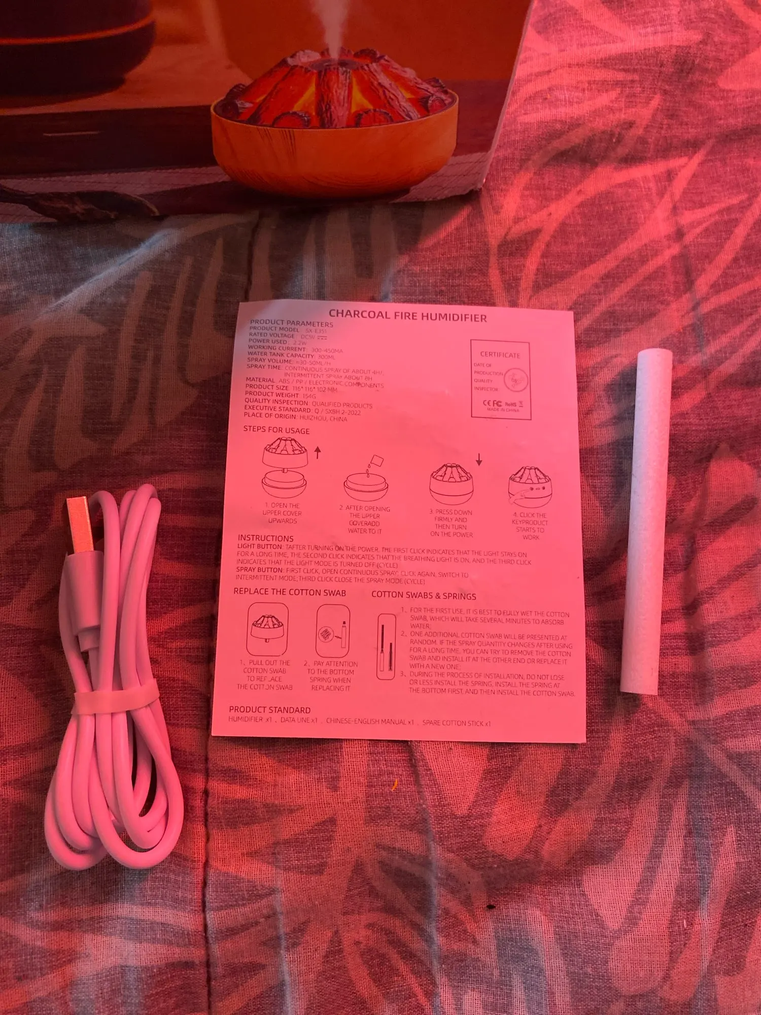 Charcoal Fire Air Humidifier & Aroma Diffuser β Mini Mist Sprayer with Night Light for Home